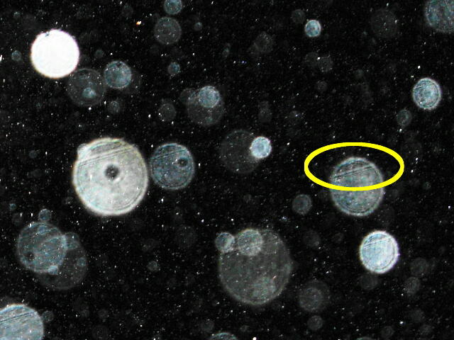 その部分を等倍で見ますと、左にあるオーブのような玉が幾つか集合したものと解ります。