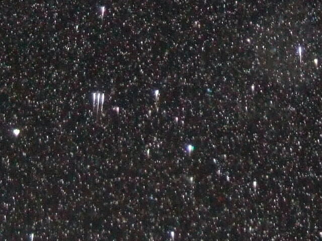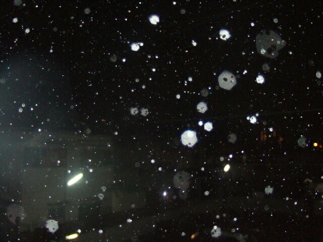 無数に降り注いでいることから雨粒と解るでしょう。