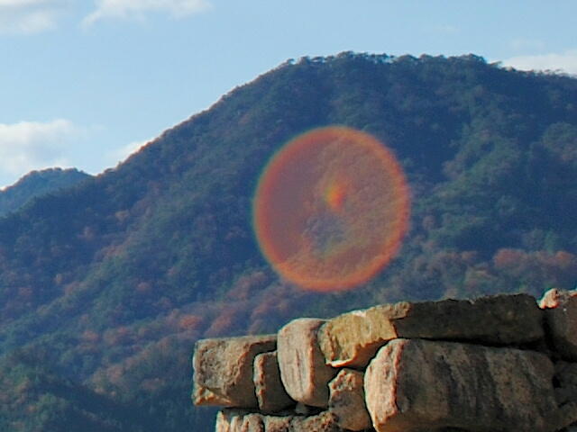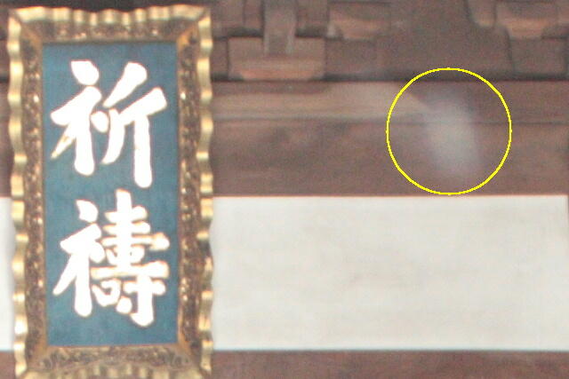 下記の写真を一見しますと、オーブが写っている?、ように見えます。