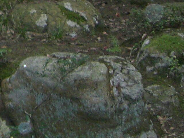 同じく笠原神社の磐座にも見られました。写真の右上と左下です。